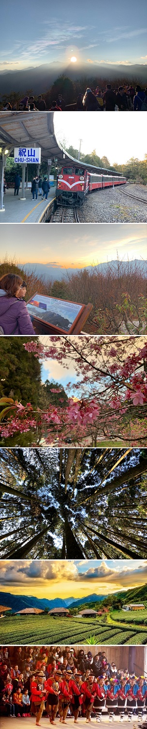 ●自由前往欣賞~阿里山晚霞夕照&雲海。安排祝山觀日出森林小火車(或可以改塔塔加小車觀日專車)
