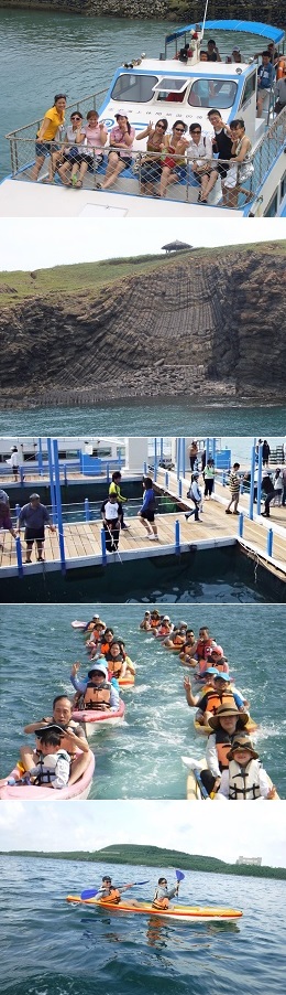 第2天 早餐~【A環島】跨海大橋~易家仙人掌冰~二崁古厝~冰花鮮果汁~大果葉玄武岩~午餐~澎祖食品~媽宮黑糖糕免費品嘗~Pier3澎坊三號港購物廣場~【B】吉貝玩水一整天 ~ 晚上一起BarBeQ燒烤吃到飽