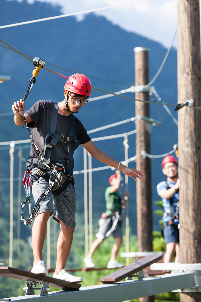 【高空漫步】懸吊在高空之中,身體的平衡只剩下腳下唯一的細繩,下一步,你會怎麼走?一次挑戰高空漫步五項關卡:剪刀橋→獨木橋→翹翹板→蔓藤路→蜘蛛網,征服高空極限平衡,不要往下看,終點就在前方。